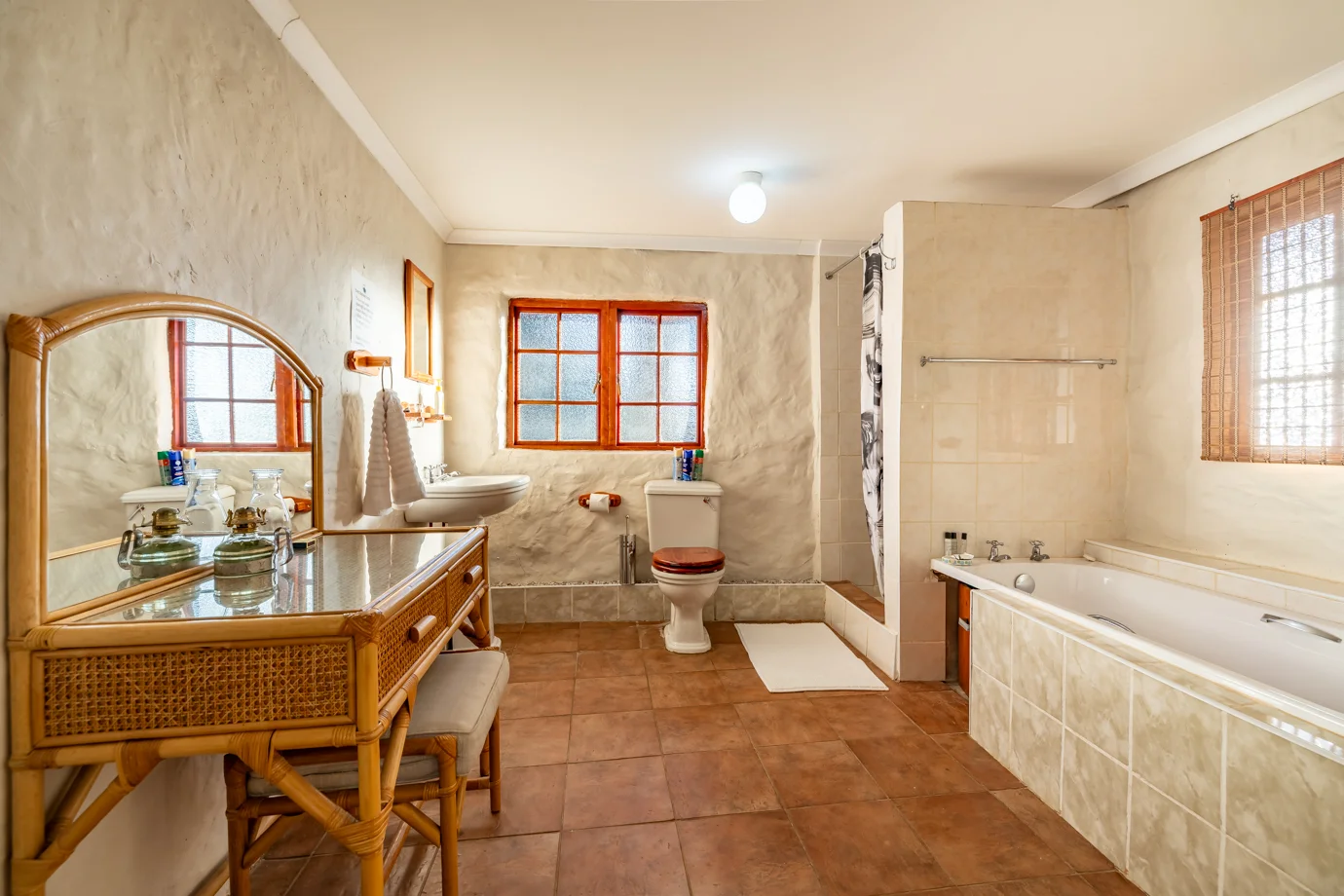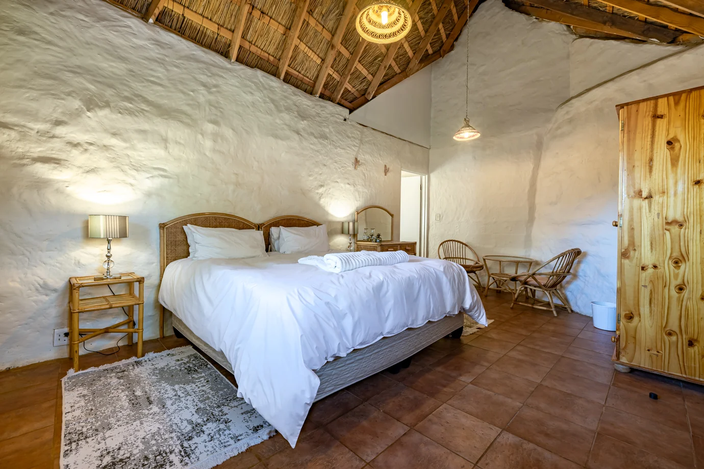 - Khotso Suite: Our premium rondavel, Khotso is a spacious double en-suite featuring both a bath and a shower. The suite includes a separate lounge area, offering extra space, comfort, and a more relaxed stay.