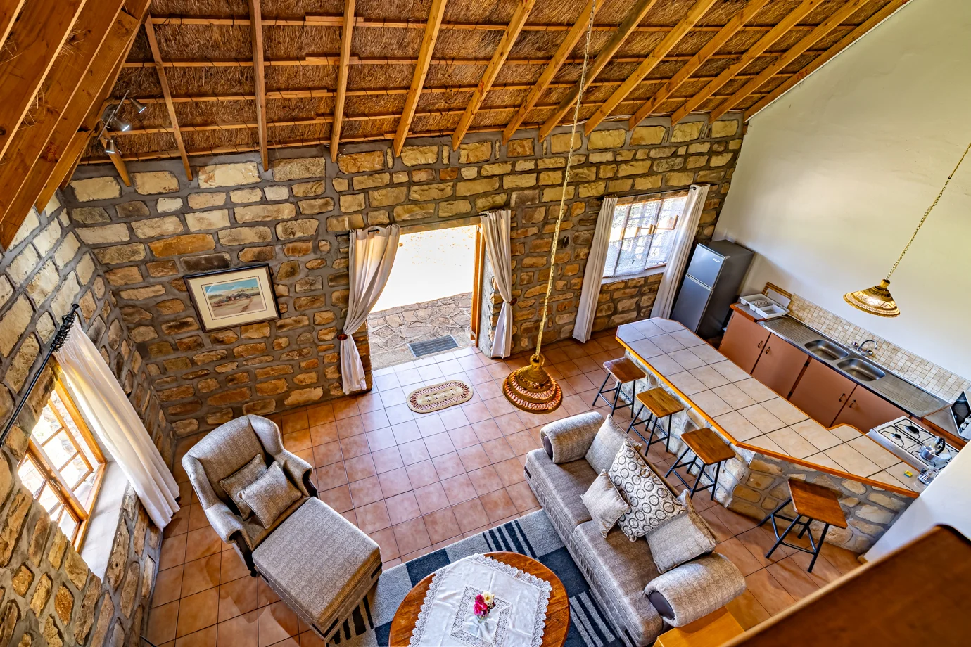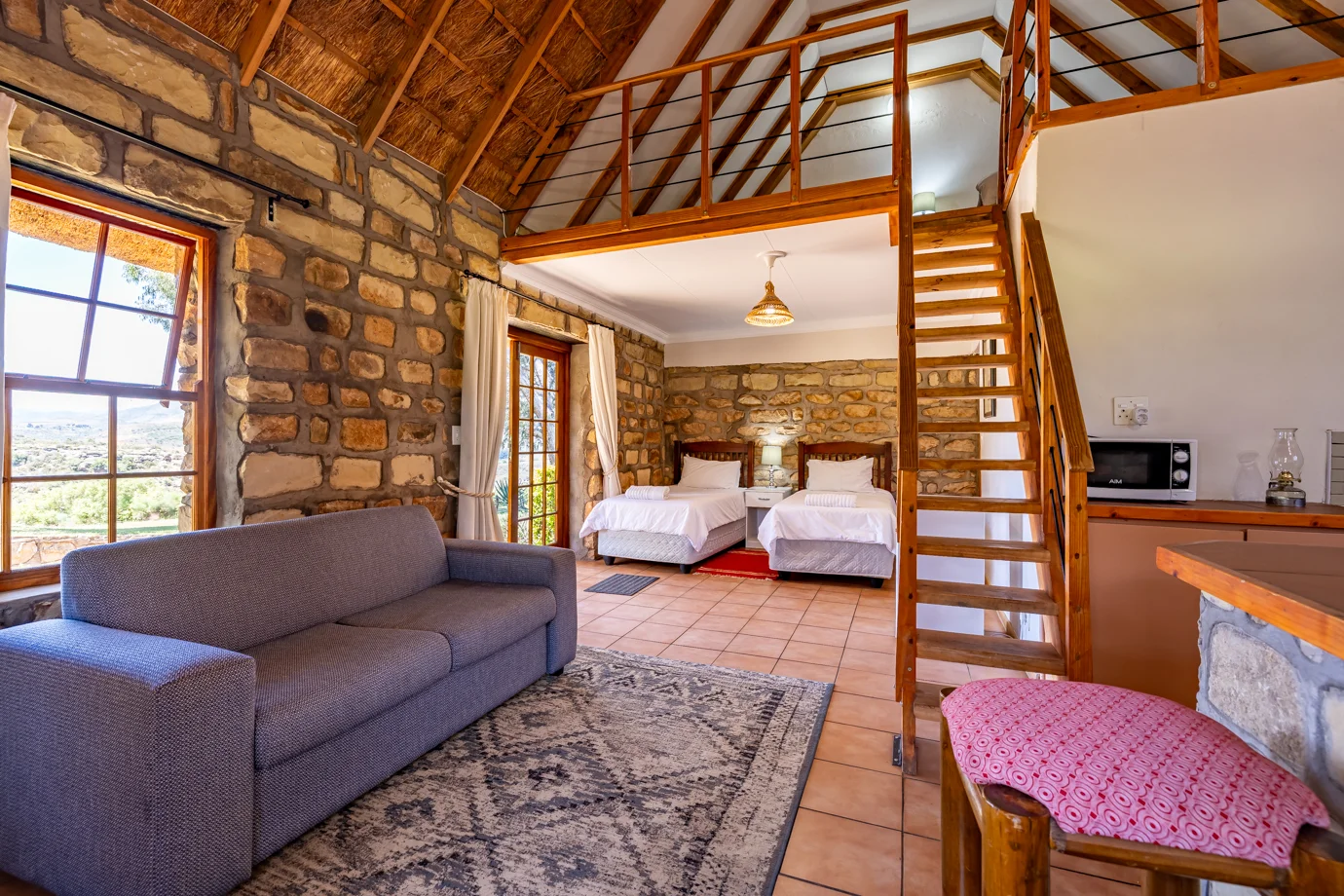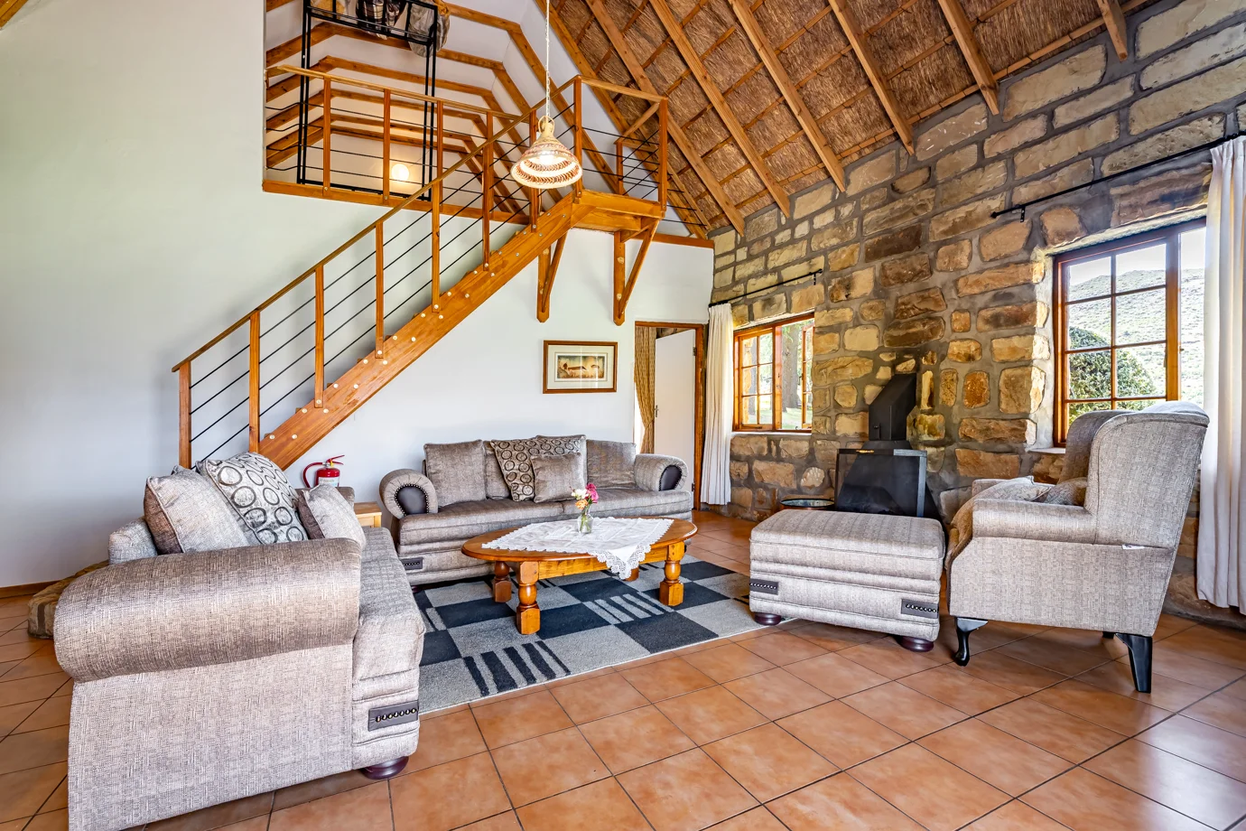 Phasemane House is well suited to families and groups looking for spacious mountain accommodation at Ramabanta Trading Post. The house offers flexible living areas designed for shared time, relaxed meals, and evenings spent together indoors during cooler months. With a welcoming layout and generous room sizes, Phasemane House provides a comfortable base for longer stays, group getaways, and family travel in the surrounding mountain region.