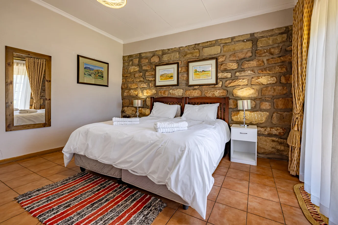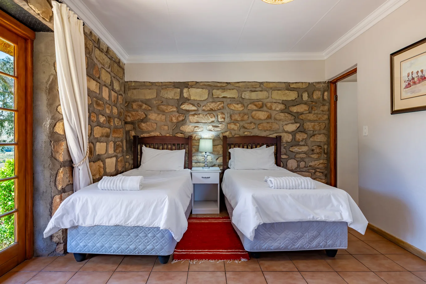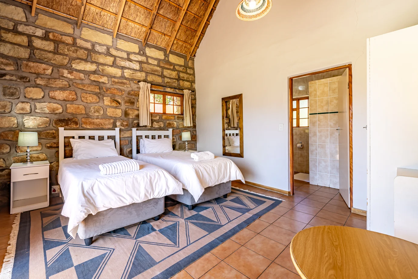 - Phasamane Room 3: A double en-suite room with bath and shower, offering a private retreat ideal for couples seeking rest, relaxation, and quiet time together.